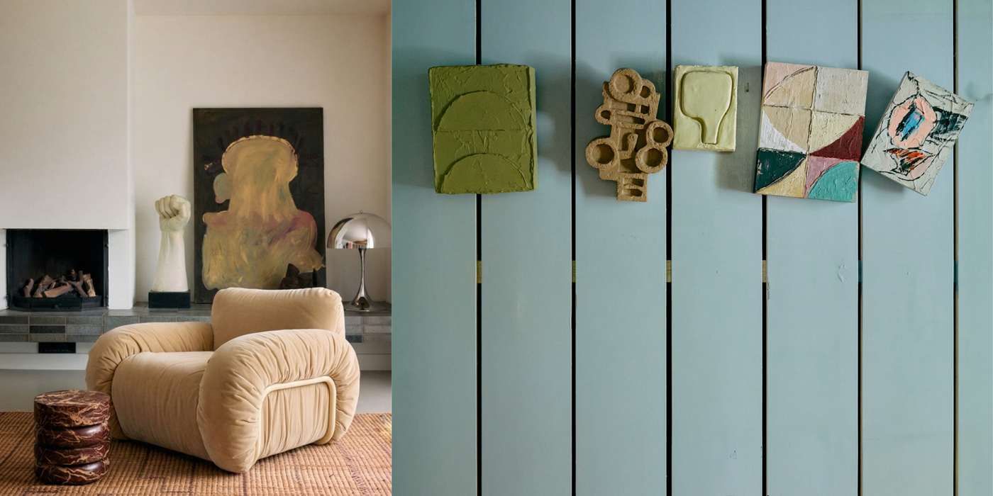 Make a statement with deep olive velvet, sculptural lighting, and bold abstract art. This curated look blends mid-century soul with contemporary luxury to create a space that feels both grounded and elevated.
