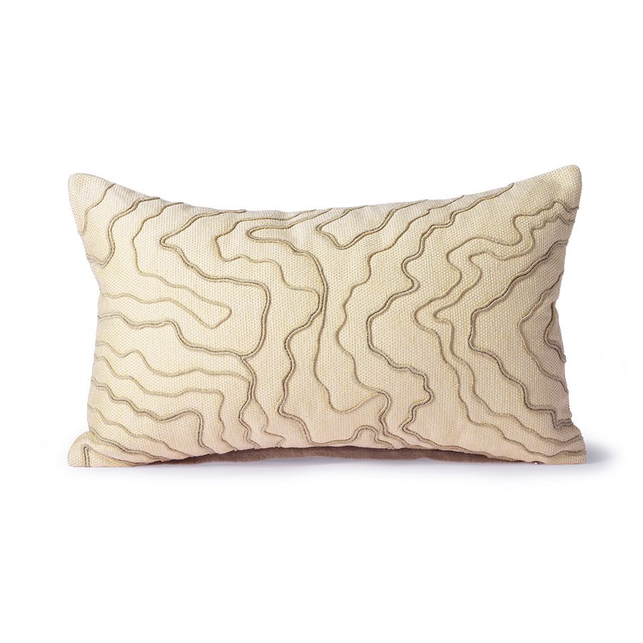A fluffy white and beige cushion made of 100% cotton, to add warmth and softness to any space.