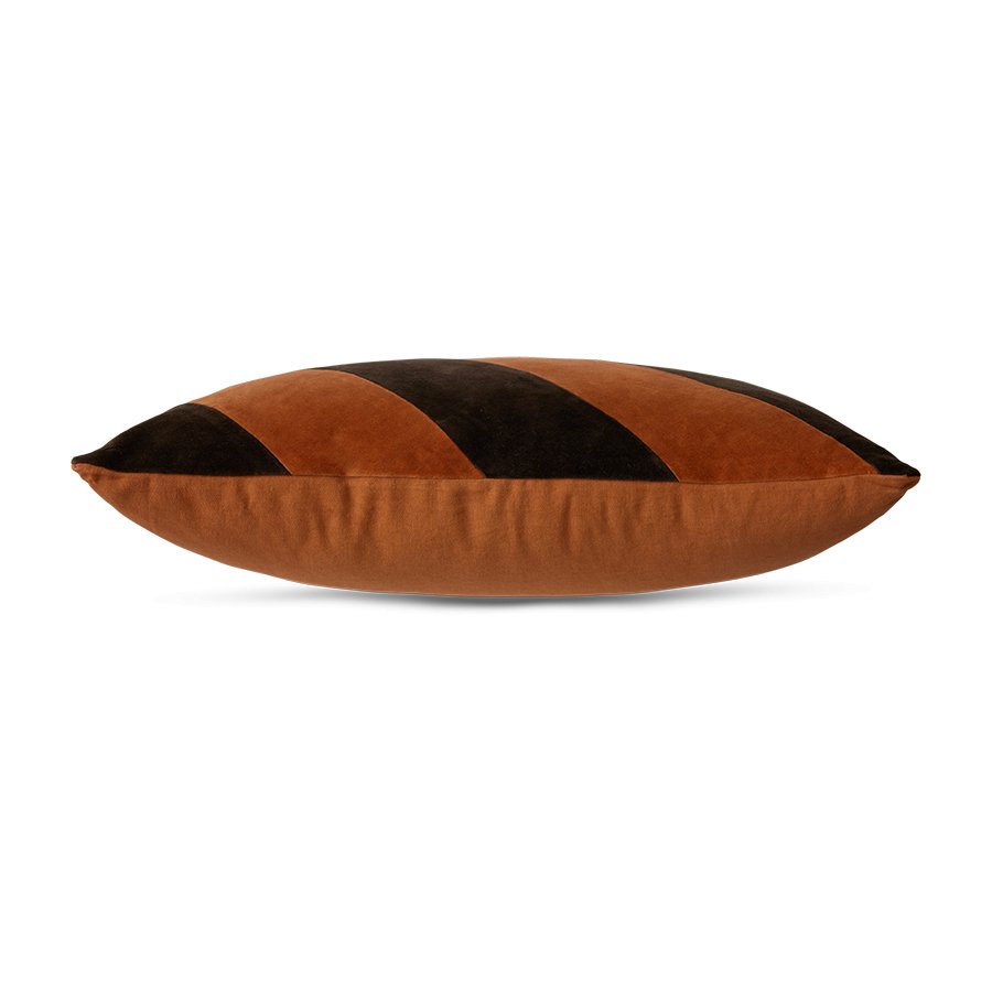 Indulge in the beauty of autumn with our Striped Velvet Cushion - September. Featuring bold diagonal stripes of warm orange and rich chocolate brown, this cushion is a cozy addition to any textile collection. Let the design inspire the passion and warmth of a September afternoon.