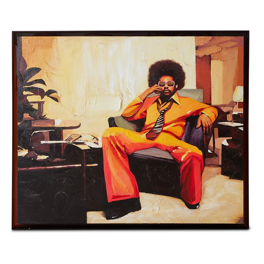 Experience the nostalgia and warmth of the 70s with this striking wall art. Vibrant and confident, it captures the essence of the era with its bold fashion and relaxed style. The textured strokes and sleek plexiglass frame add a modern touch to its effortless cool.