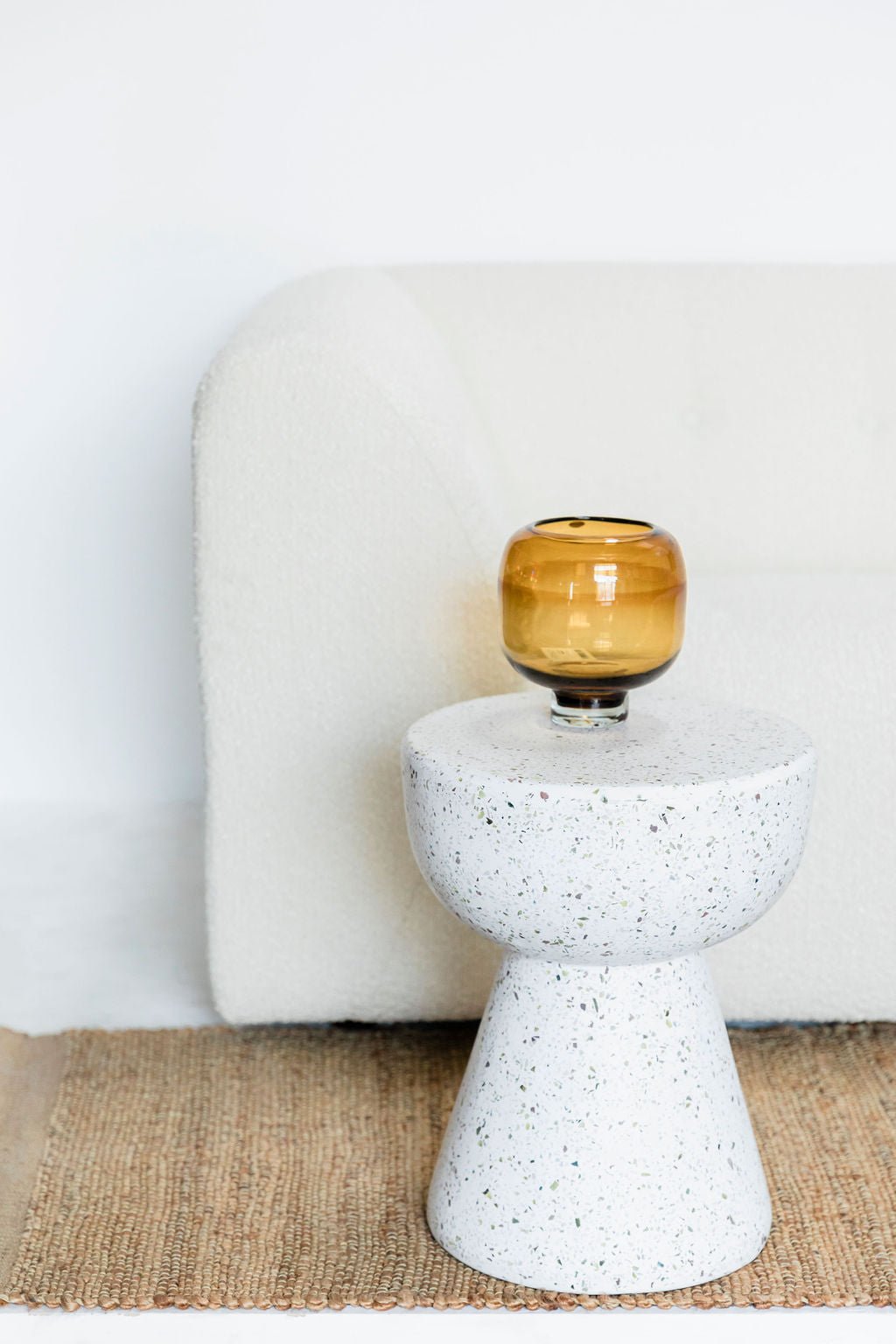 This Terrazzo side table is sure to be the crown jewel of any living space. Combining the luxurious and timeless terrazzo material with a unique, handmade design, it is an organic addition to your home and an exquisite showcase of multicolor tones. Elegant and sophisticated, this side table is perfect for adding the finishing touch to any room.