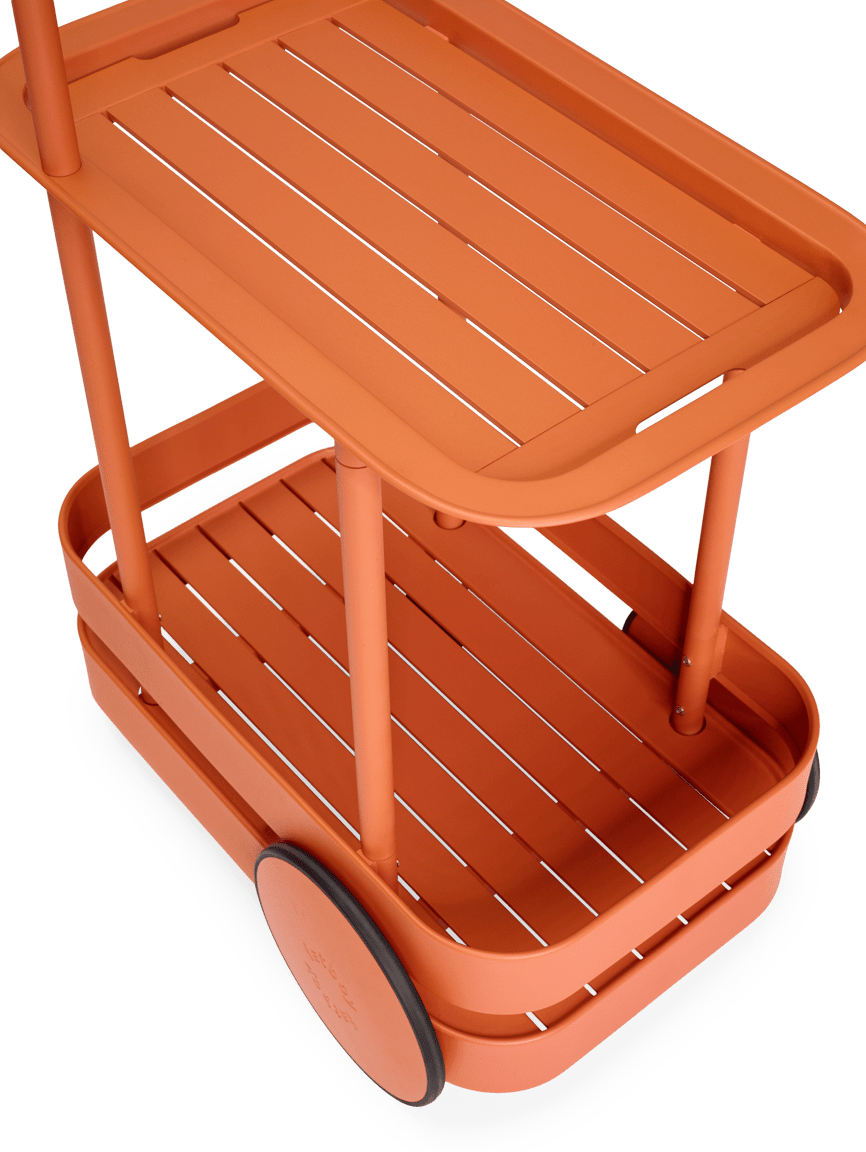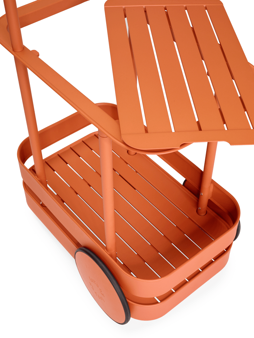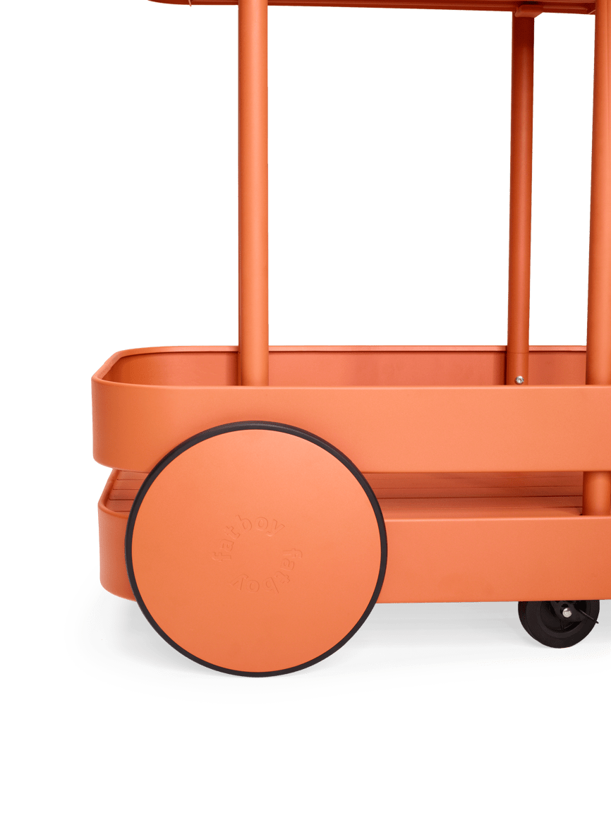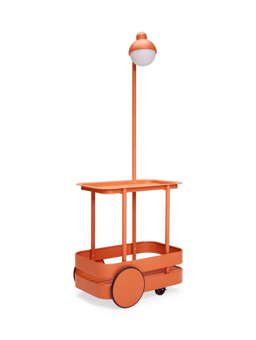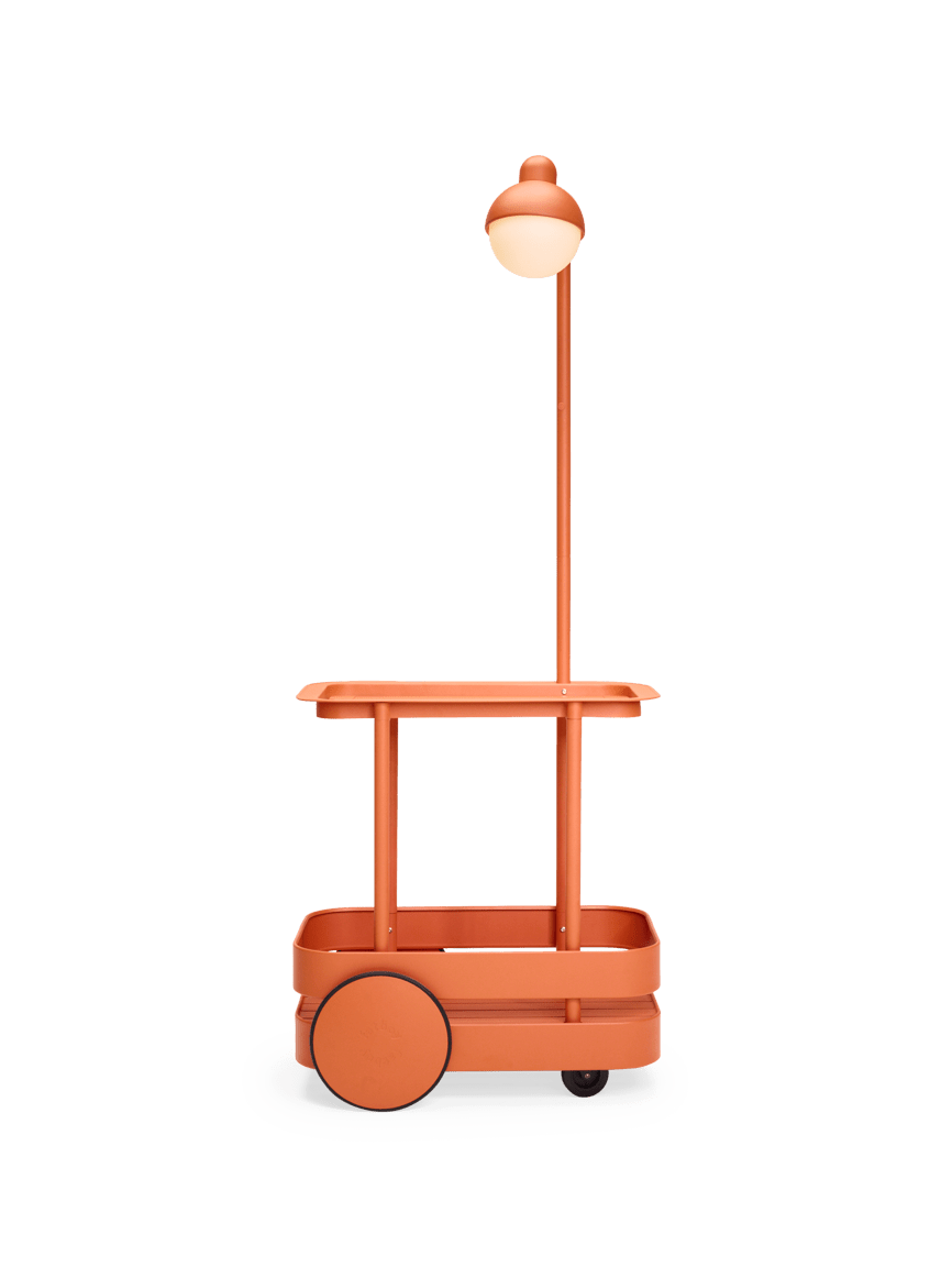 Elevate your entertaining with the Jolly trolley & bar cart in vibrant tangerine. This versatile piece effortlessly wheels around to serve cocktails or create a cozy balcony retreat surrounded by plants. Its removable upper tray adds convenience, while dimmable LED lights set the perfect mood. Rechargeable via USB-C, it combines style and functionality to brighten any gathering or quiet moment.
