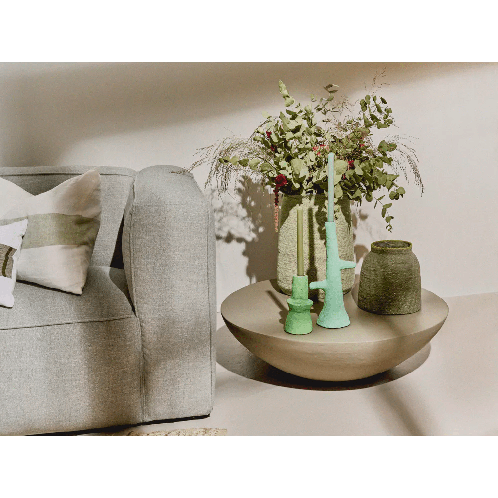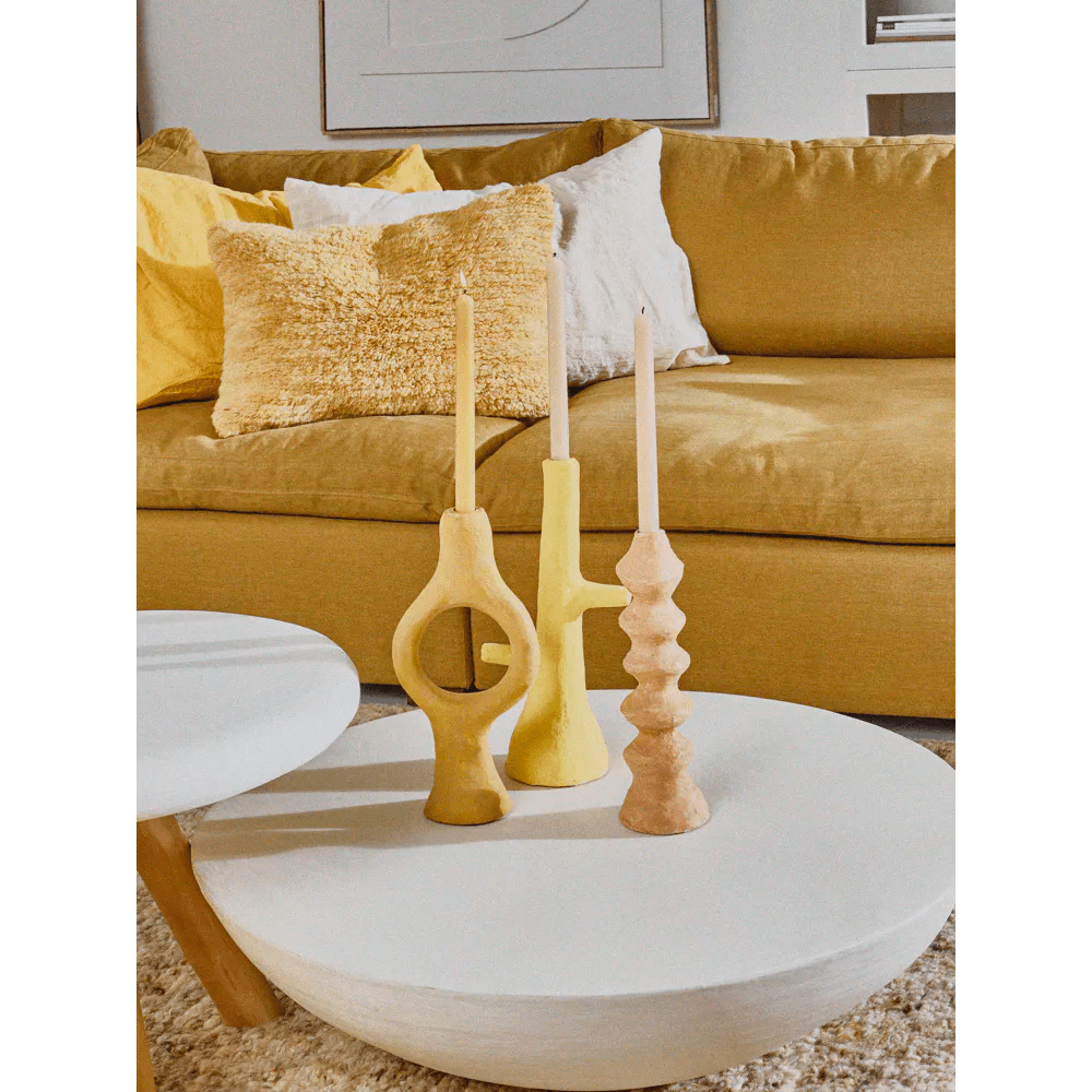 Elevate your home decor with our Almeria candle holder. Crafted with playful papier-mâché and a metal center for safety, these chandeliers come in various regressive colors and shapes. Perfect for adding a touch of fun and elegance to any room. Light up your space with style.