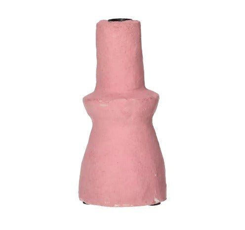 Introducing the Almeria Candle Holder, a playful and regressive addition to your home decor. Made of sturdy papier mâché in a variety of fun colors and shapes, it features a metal center to protect against heat. Elevate your space with these exclusive and stylish candlesticks.