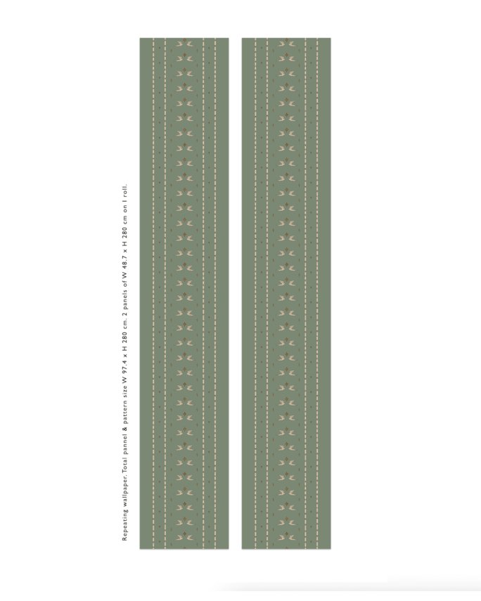 1 roll contains 2 lanes of 48,7Wcm x 280Hcm. It’s only repetitive in width. Price per roll, Installation Included