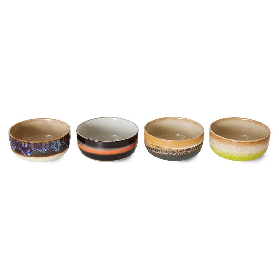 The perfect size for your yoghurt breakfast, a tasty bowl filled with snacks or a small side dish. The dessert bowls can be used anywhere and fortunately they come in a set of four different finishes.