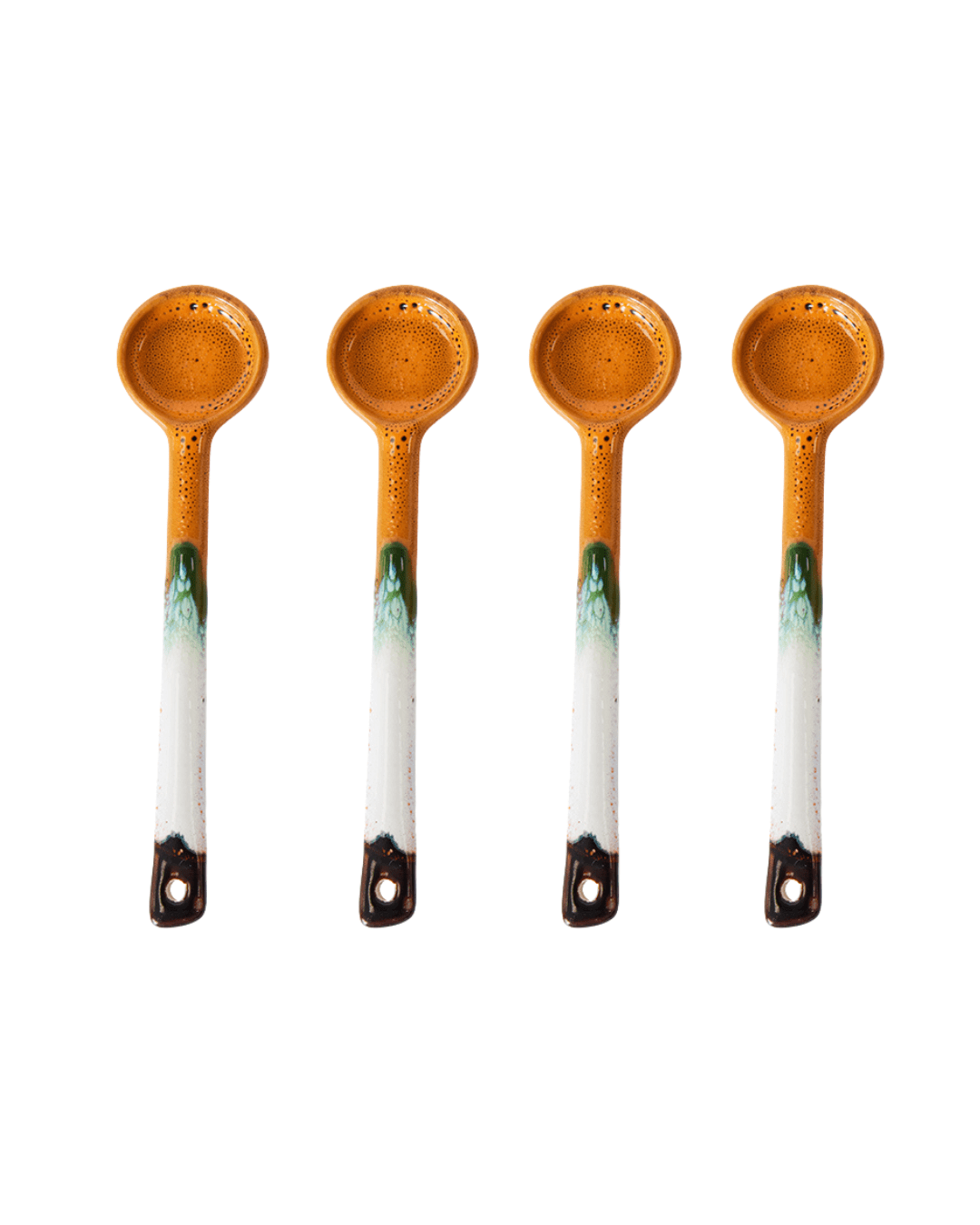 For those who enjoy that last bit of foam in their cappuccino cup, or simply use sugar or milk. The 70's ceramic spoons are not only convenient but also playfully coloured. Available in a set of four, each with its own unique finish.
