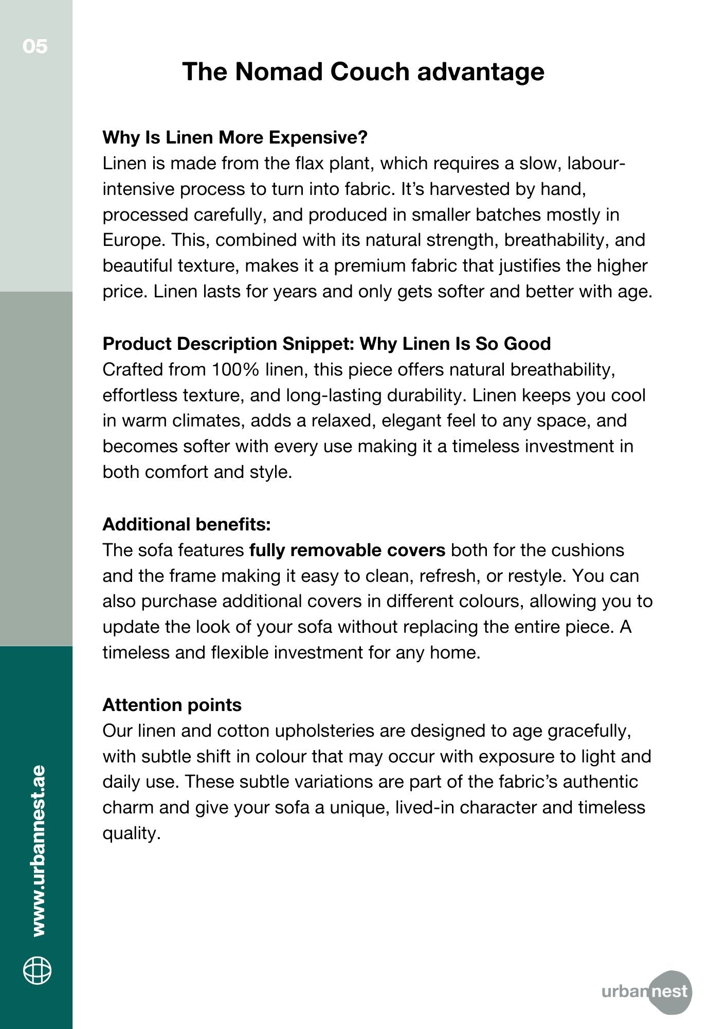 The Nomad couch was inspired by the effortless charm of Mediterranean boutique hotels, where every detail feels curated yet inviting. We imagined rooms where linen sofas beckoned you to sink into their soft folds, where relaxation was the essence of luxury. This piece blends the warmth of southern Europe with pared-down functionality, offering comfort and style without pretense a true reflection of spaces designed to make you feel at home.